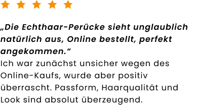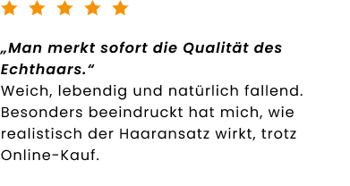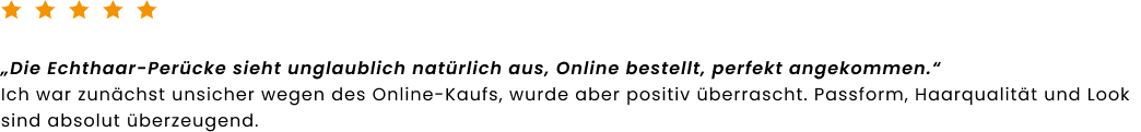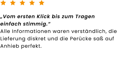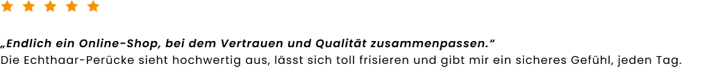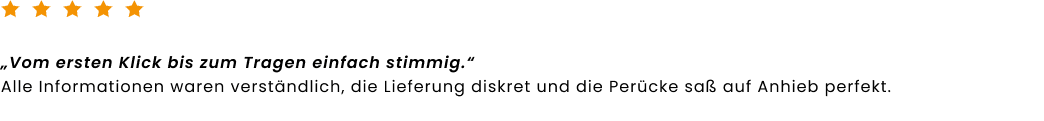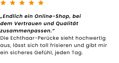deinem Online-Shop für hochwertige Echthaar-Perücken. Bei Rieswig.de findest du exklusive Echthaar-Perücken in Premium-Qualität, die durch ihre natürliche Optik, hohen Tragekomfort und sorgfältige Verarbeitung überzeugen. Inspiriert von über 100 Jahren Erfahrung im traditionellen Perückenhandwerk verbindet Rieswig.de meisterhafte Handwerkskunst mit modernem Online-Shopping, für einen sicheren, diskreten und komfortablen Kauf deiner Echthaar-Perücke. Als Teil einer Perückenmacher-Familie in fünfter Generation stehen wir für Qualität, Vertrauen und echtes Einfühlungsvermögen. Ob bei Haarausfall, aus medizinischen Gründen oder für deinen individuellen Stil. Unsere Echthaar-Perücken schenken dir ein natürliches Haargefühl und stärken dein Selbstvertrauen jeden Tag aufs Neue.