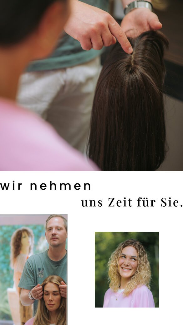 Starten Sie Ihre persönliche Reise in geschützter Atmosphäre. Wir nehmen uns Zeit für Ihre Wünsche und finden in aller Ruhe die perfekte, maßgeschneiderte Zweithaarlösung für Sie. Unverbindlich und vertraulich.